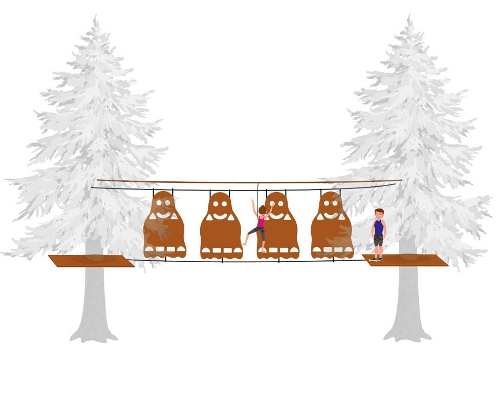 安装在两根钢丝绳上。鬼高250厘米。这种元件的表面是耐风雨的。爬鬼尺寸:80厘米× 220厘米。颜色攀爬架颜色: