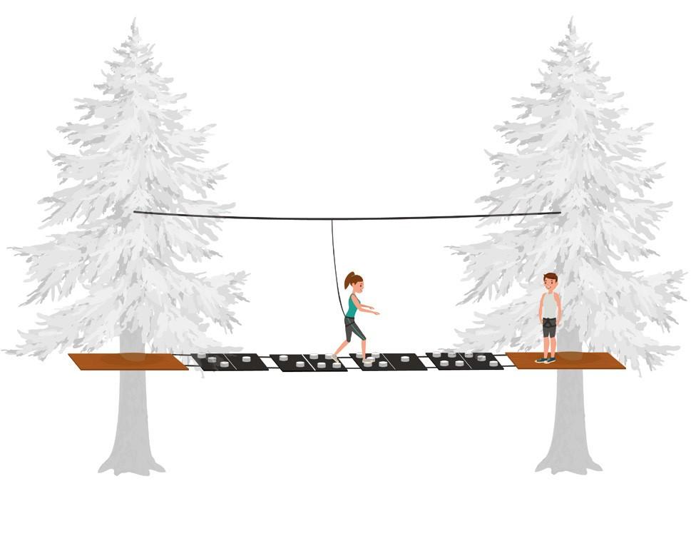 安装在两根钢丝绳上。孔之间的距离为50厘米。