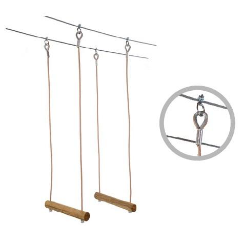 安装在两根钢丝绳上。钢丝绳之间的距离为60厘米。吊带长200厘米。大小圆梁尺寸:75cm x ø 10cm吊索直径:16mm绳型:大力神绳或PP绳