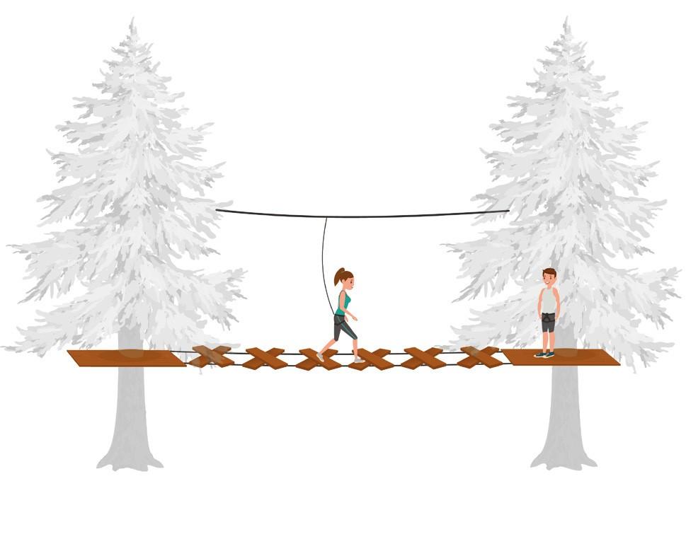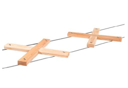 安装在两根钢丝绳上。孔之间的距离为60厘米。
