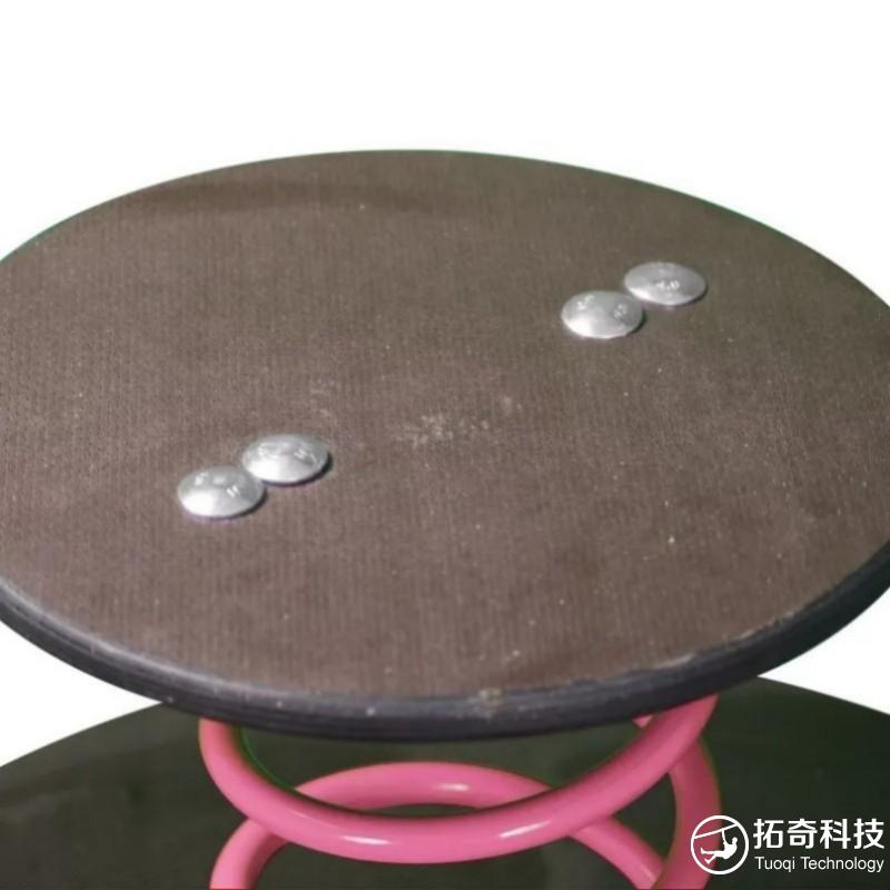 组成:直径300毫米的防滑垫片安装在红色弹簧上。弹簧固定在直径600毫米的底座上。