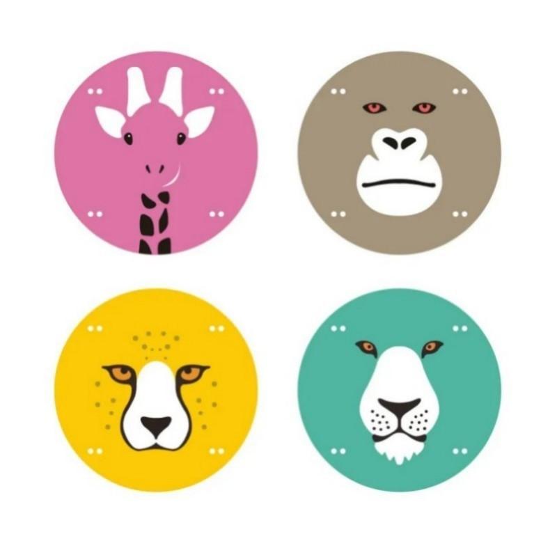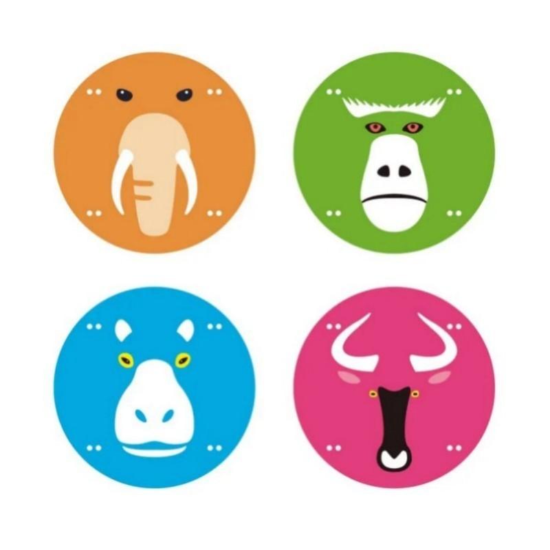 第一组四联包含长颈鹿、大猩猩、猎豹和狮子。第二组四联包含大象、狒狒、河马和角马。