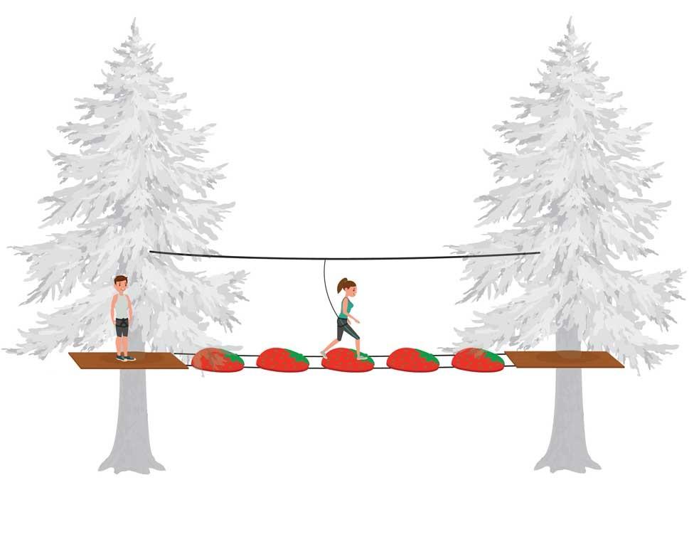 安装在两根钢丝绳上。孔之间的距离为50厘米。