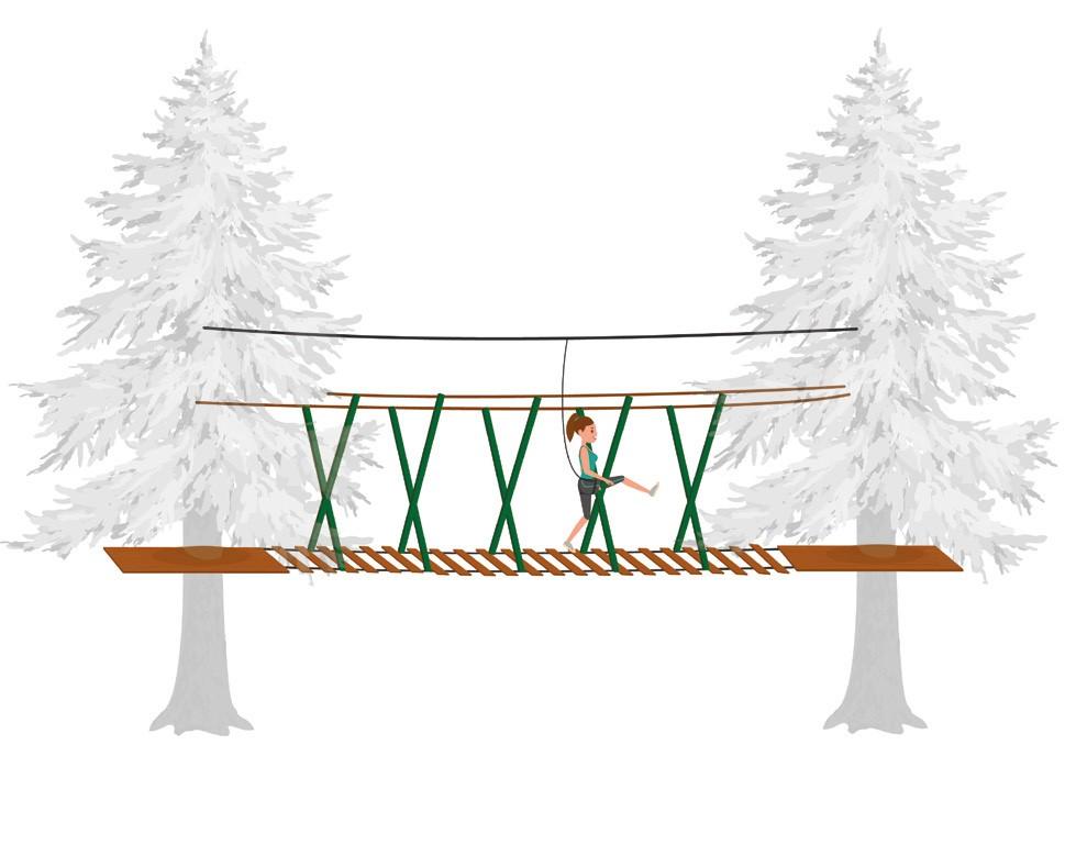 安装在两根钢丝绳上。孔之间的距离为50厘米。床垫安装在两根钢丝绳上。
