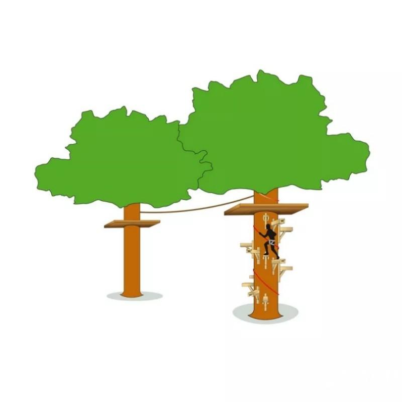 这个游戏模块用棘轮绑带将楼梯固定在树上。