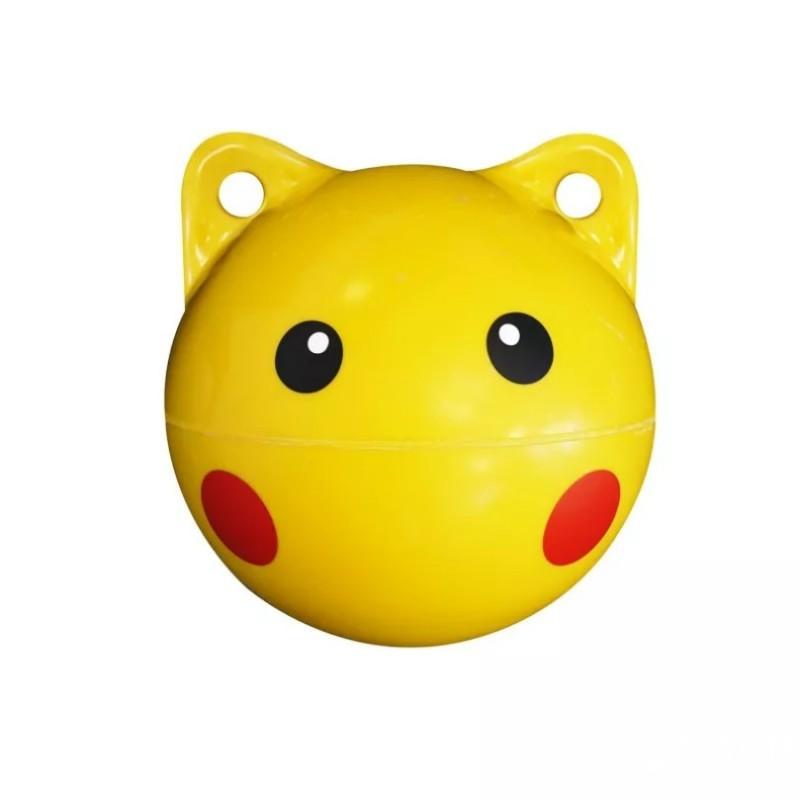 该装置由一个Ø300毫米黄色球体制成,带两个手柄,配备两根Ø16毫米聚丙烯悬挂绳,带加固环和悬挂环。