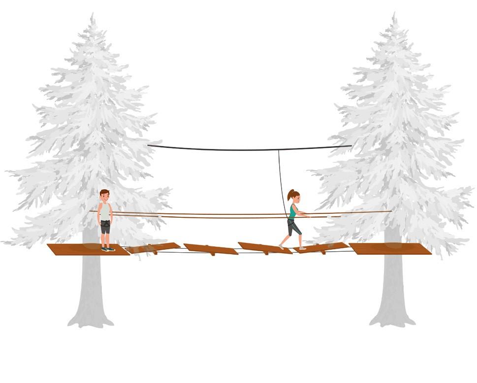 安装在两根钢丝绳上。孔之间的距离为60厘米。