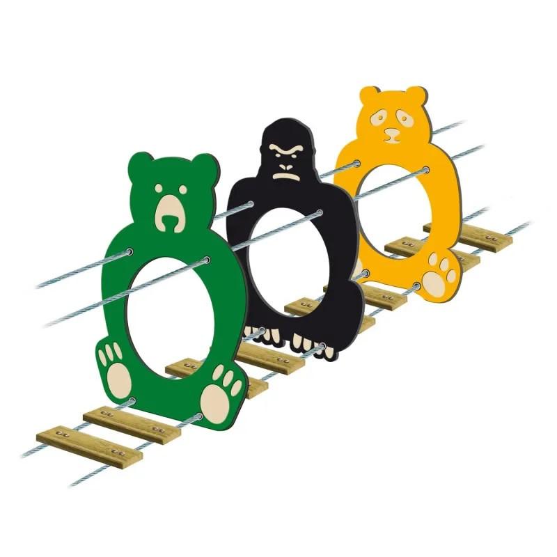 Feel like exoticism? Let's take you into the jungle!You already knew the Enchanted Tunnel? This game module offers a new playing experience to the little ones by allowing them to cross this module on the footbridge boards. Until now available in the shape of a rabbit, apple, pear, turtle, leaf, cloud or acorn, you can now embellish your courses with a Panda, a Bear or a Gorilla thanks to the Jungle Tunnel!