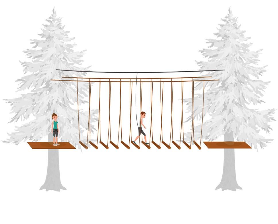 安装在两根钢丝绳上。钢丝绳之间的距离为60厘米。吊带长200厘米。大小圆梁尺寸:75cm x ø 10cm吊索直径:16mm绳型:大力神绳或PP绳