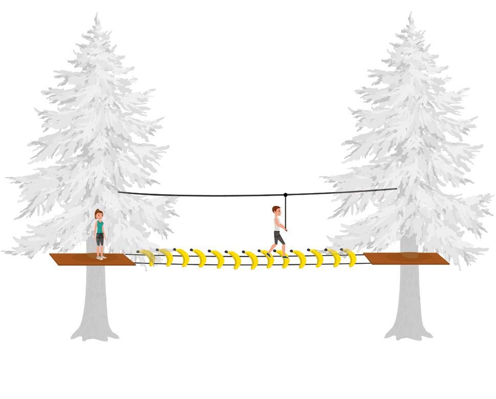 安装在两根钢丝绳上。孔间距为50厘米。元件表面防滑且耐风化。