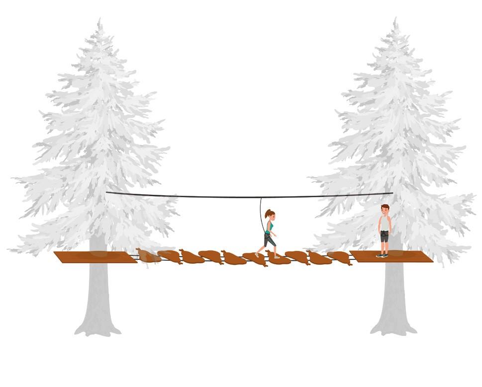 安装在两根钢丝绳上。孔之间的距离为50厘米。
