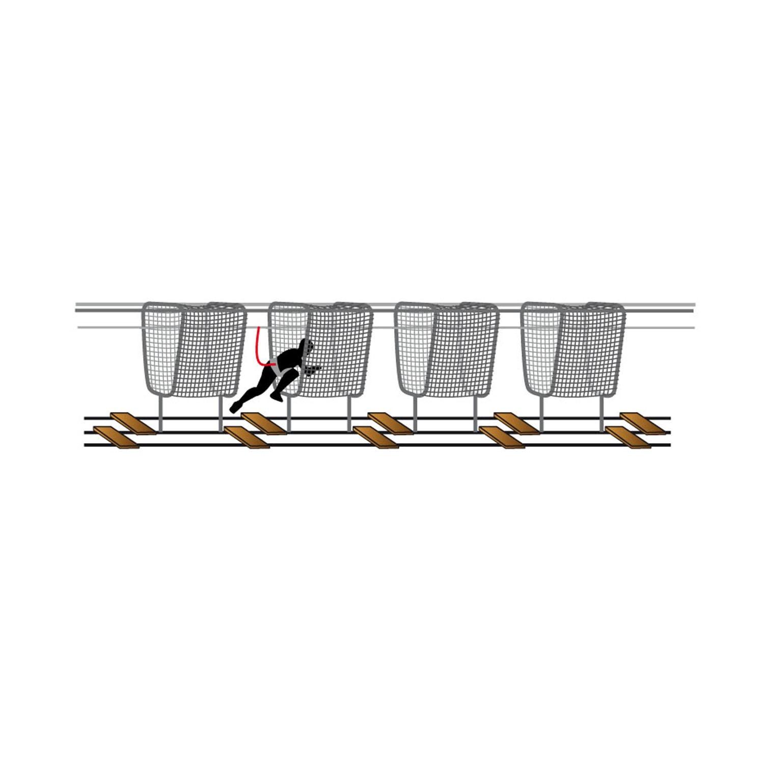 For more strength, this module is designed with a double bottom on the walking area. The cradle is fixed on 2 high cables and 1 under cable. We advise you to add several more in a row to build a complete module game and challenge your users!