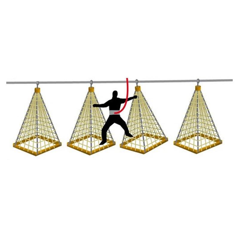 Net Pyramid is a rather complex play module that will perfectly suit your red courses. Your users will have to hang on to Net Pyramids, one after the other, until they reach the reception platform. It will take skill and concentration to complete the crossing.