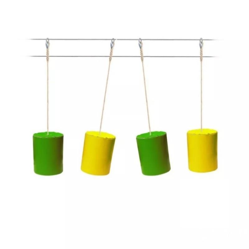 Made from 30 kg/m3 density foam, each Tac O Tac measures 400mm in diameter. The foam is covered with a PVC tarpaulin cover and has a support plate underneath. A 20 mm diameter textured polypropylene cross hanger is attached to the foam so that the modules can be suspended from the cables. Several colours are available for the obstacles: blue, orange, yellow, green or red. The complete module measures 2.50 m.